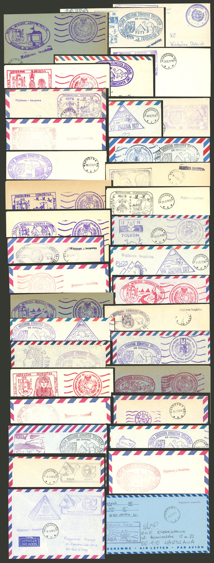Polish forces in Egypt and Syria: 24 Covers with various marks, used between 1978 and 1982, excellent quality! IMPORTANT: Please view ALL the photos of the lot, because all the content has been scanned. (Image) (Image-02)