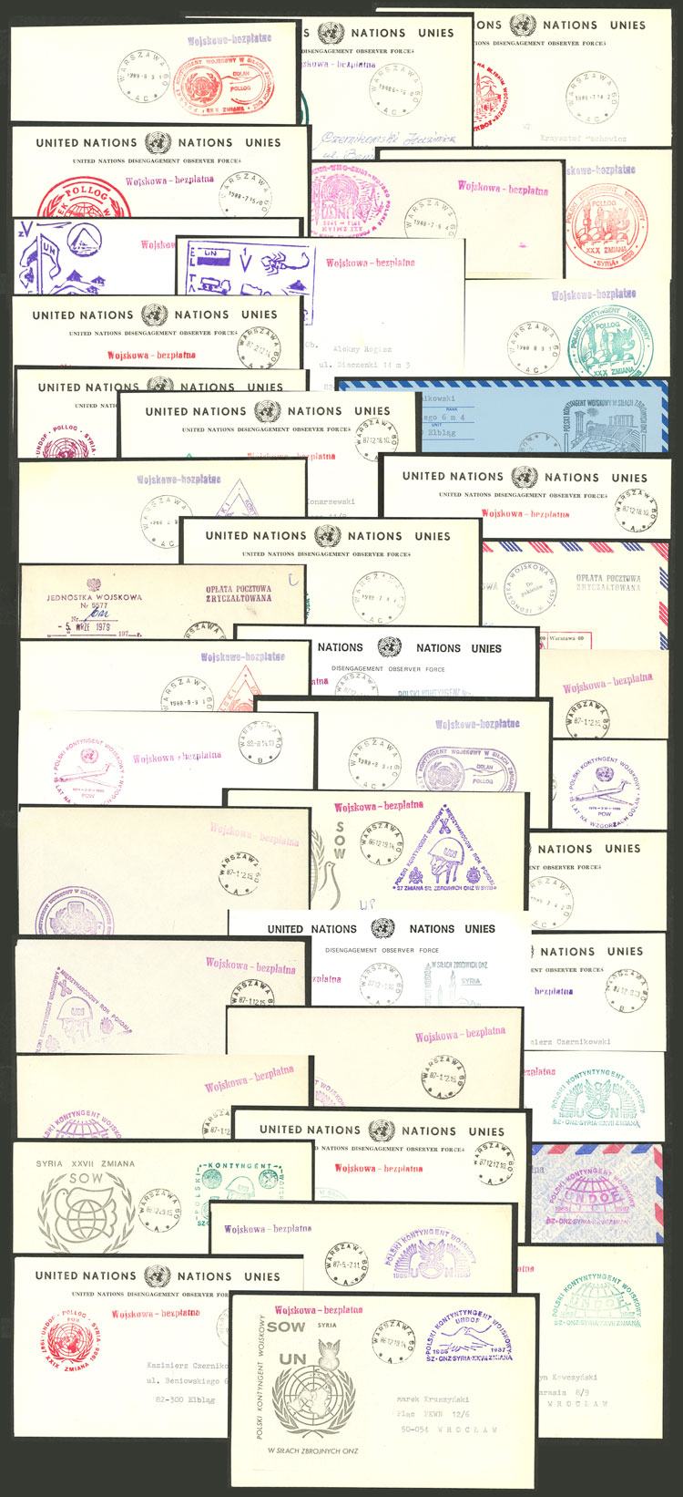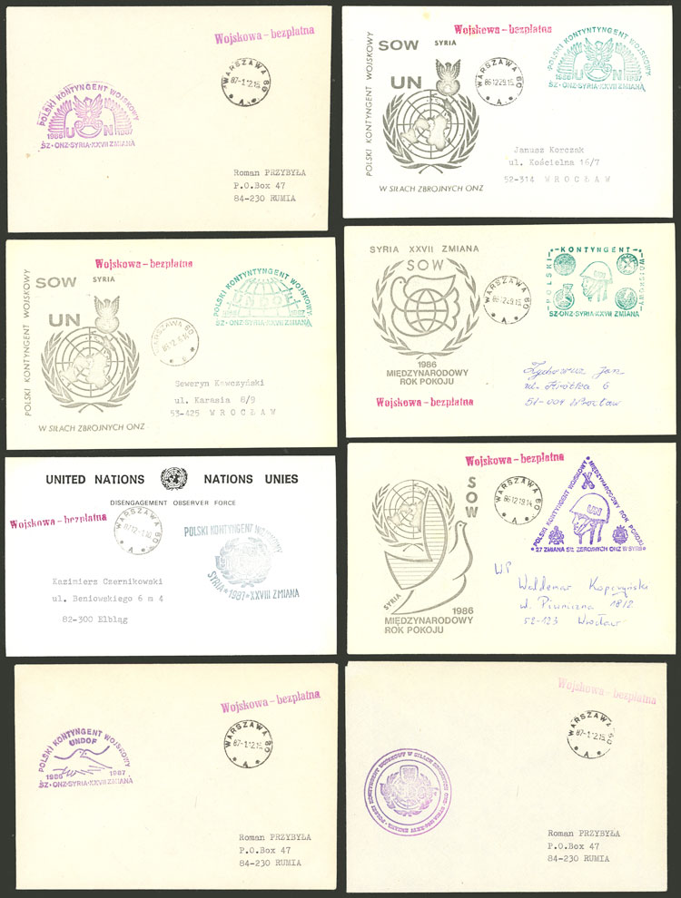Polish forces and Syria: 40 Covers with various marks, used between 1986 and 1989, excellent quality! IMPORTANT: Please view ALL the photos of the lot, because all the content has been scanned. (Image) (Image-02)