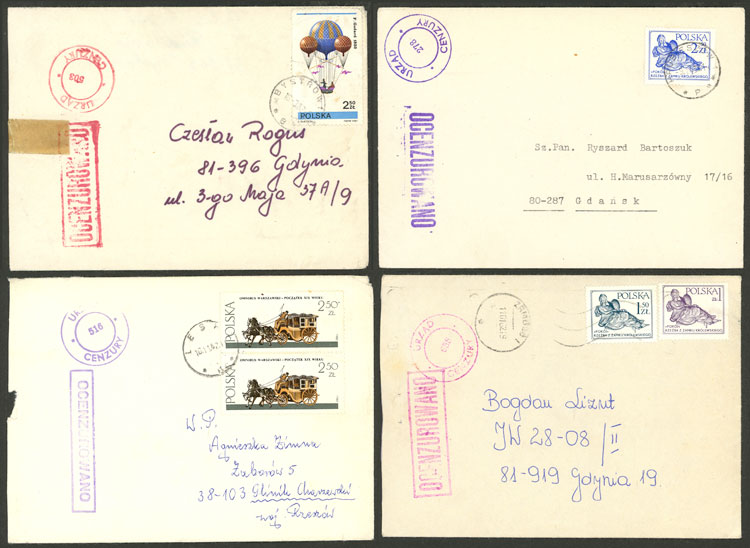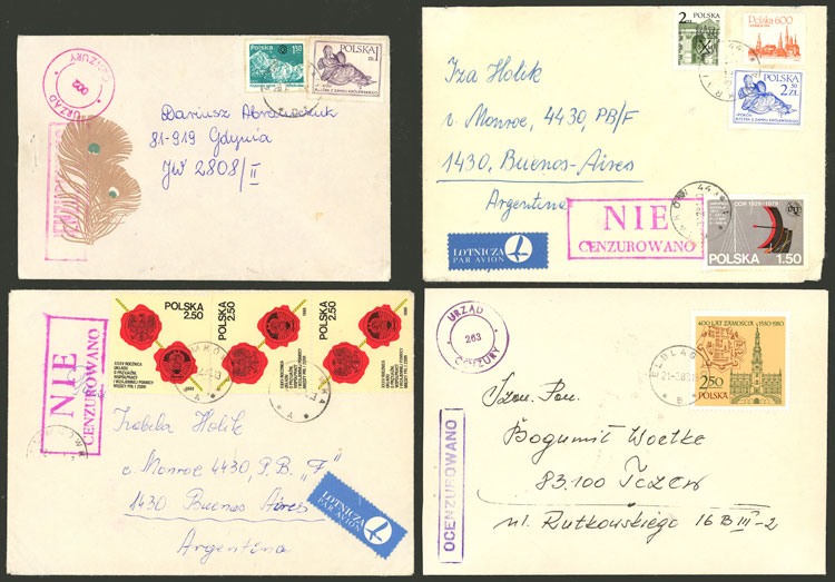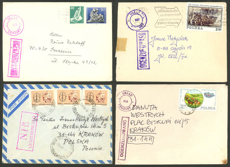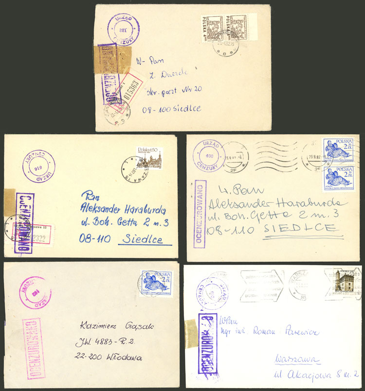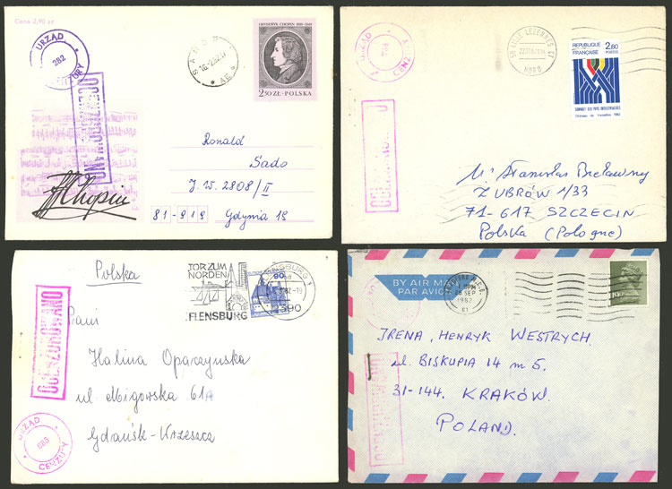 CENSOR: 21 Cover sent from, to or in Poland in 1982, all with attractive CENSORSHIP marks, very fine quality! IMPORTANT: Please view ALL the photos of the lot, because all the content has been scanned. (Image) (Image-02)