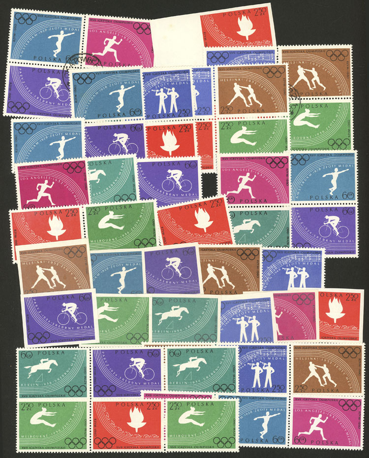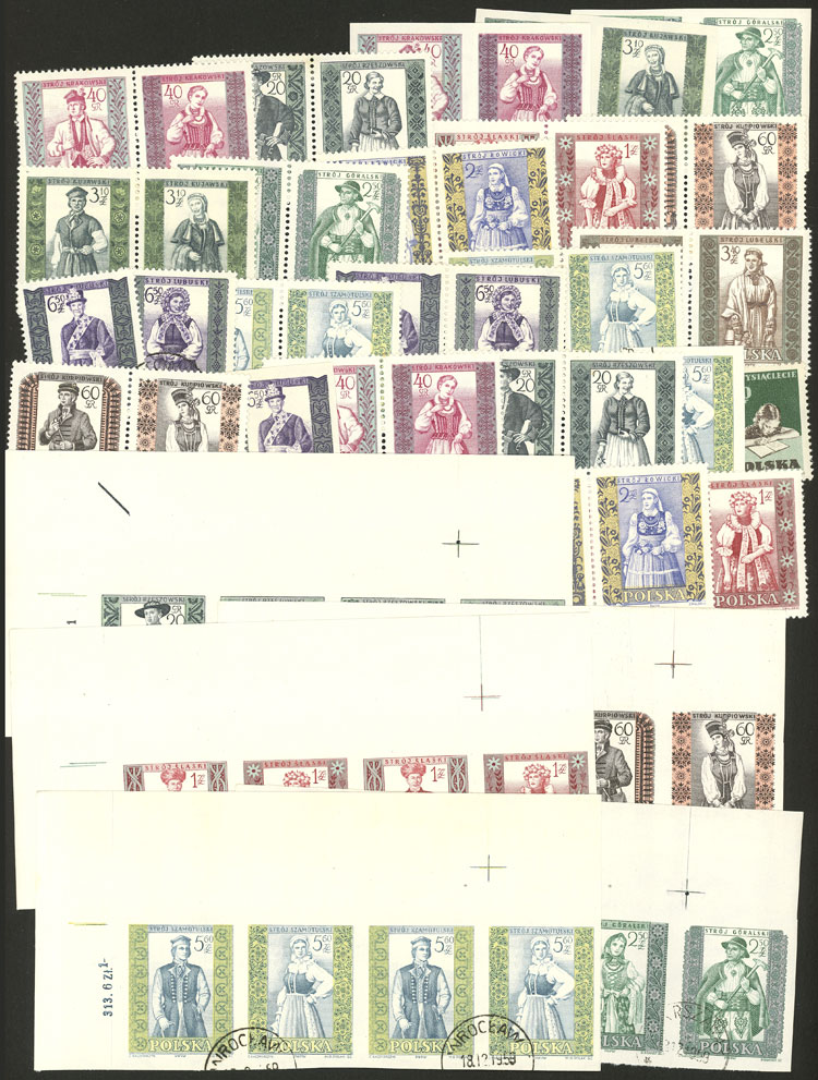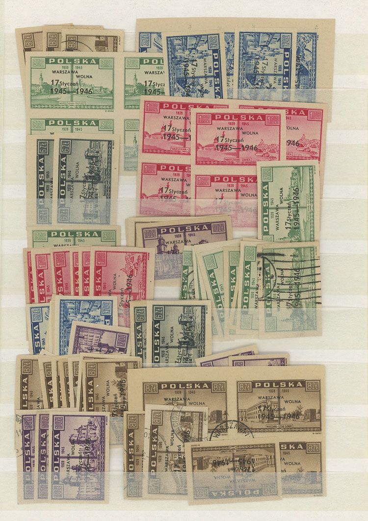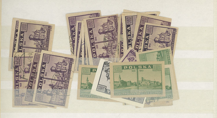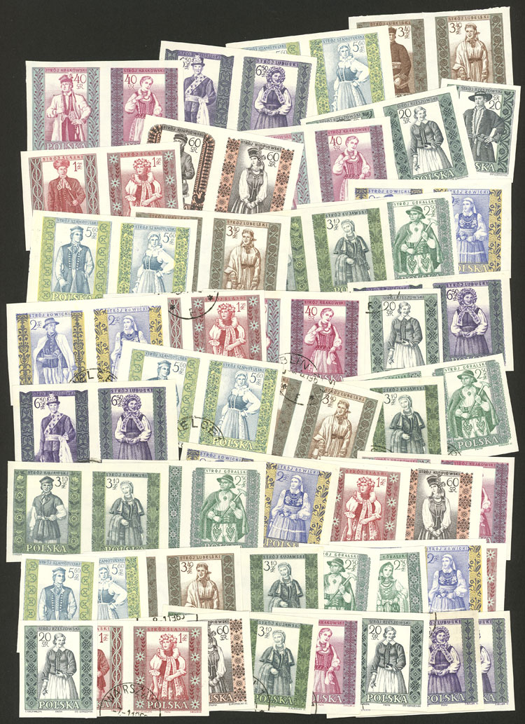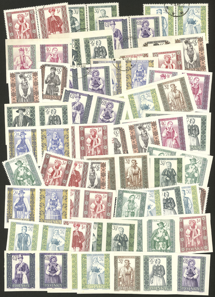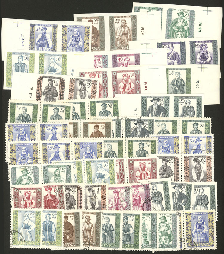 with imperforate stamps printed in black (proofs or reprints?), the back is white, without any other impressions. We also include a group of reprinted stamps in colors, also imperforate, all with "WZÓR" printed on back, VF quality, interesting! (Image)