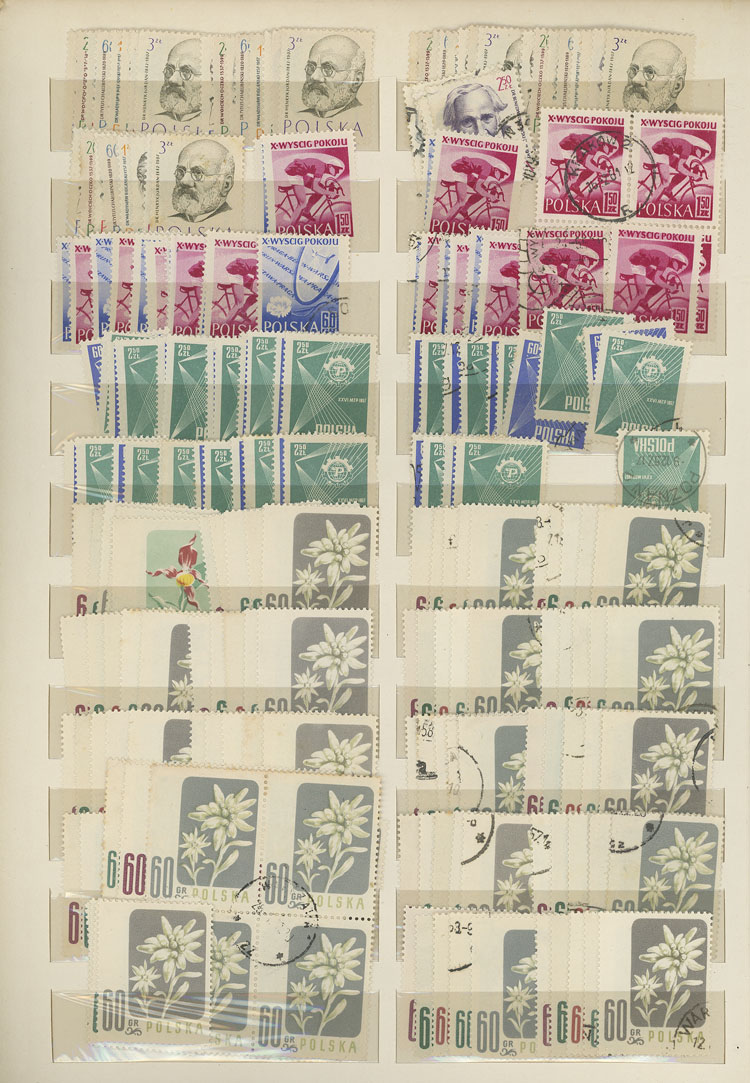 Immense stock in large stockbook, with thousands of stamps and sets issued between 1950 and 1960, including a lot of scarce material of good value, used or mint (they can be MNH, with hinge marks, probably some without gum), in general of