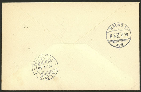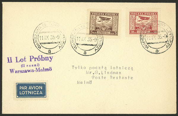 11/SE/1935 Warszawa - Malmö (Sweden), test flight, cover of excellent quality with arrival marks on back! (Image) (Image-02)