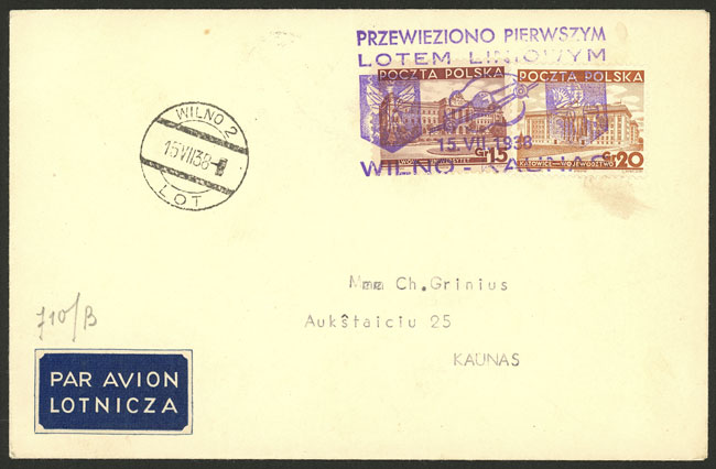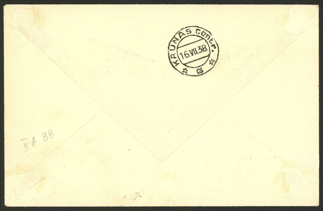 15/JUL/1938 Wilno - Kaunas (Lithuania), cover with special mark and arrival backstamp, VF quality! (Image) (Image-02)