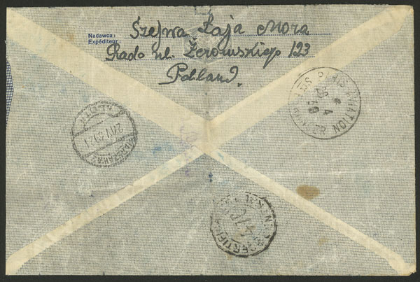 27/AP/1939 Radom - Argentina, airmail stationery envelope of 55gr. + 3.75Zl. (total postage 4.30Zl.) sent by registered mail by Air France (on back there is a transit mark of Paris el 28/AP), very attractive! (Image) (Image-02)