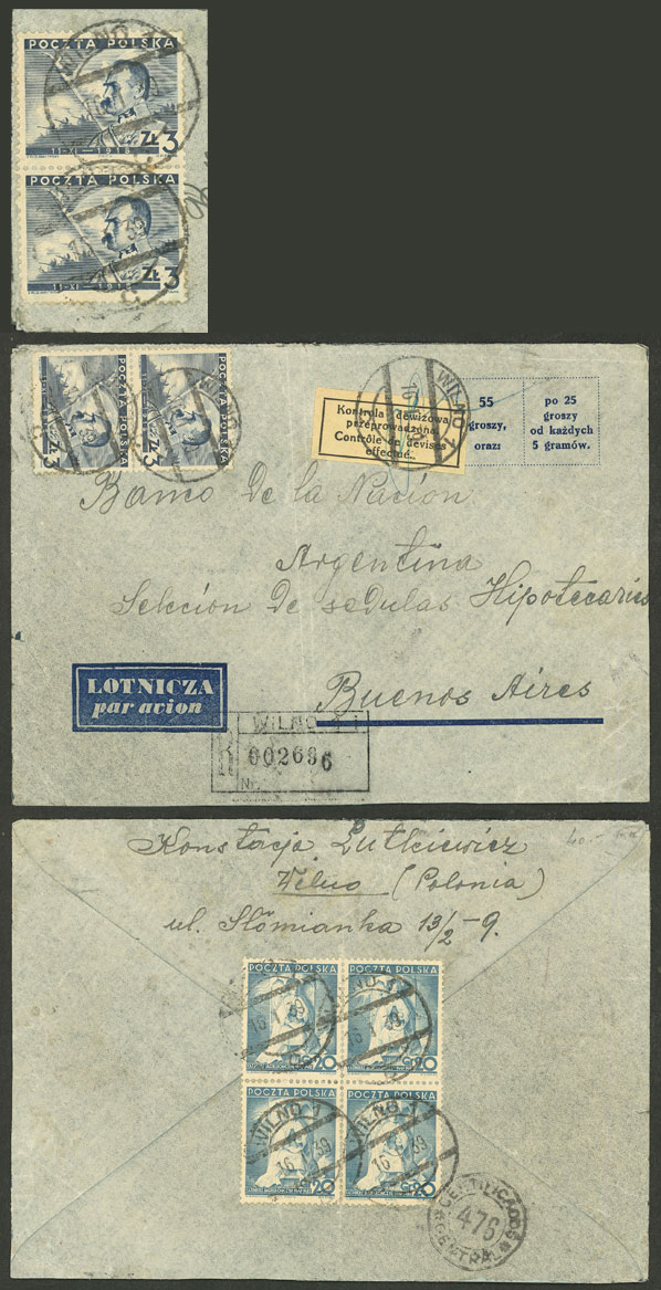 16/JA/1939 Wilno - Argentina, registered airmail cover franked with 6.80Zl, including a pair of Yvert 413, arrival backstamp, very attractive! (Image)