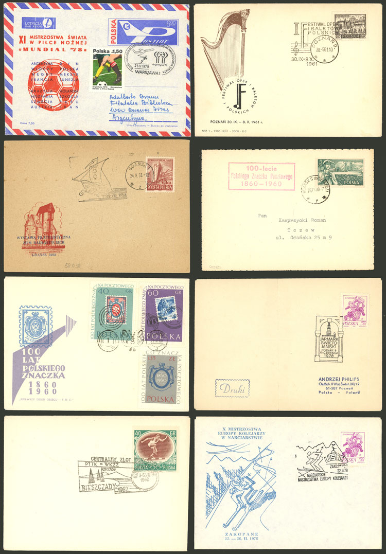 SPECIAL POSTMARKS, ETC.: Over 70 covers, cards, etc. with special postmarks (some are first day pmk), VERY THEMATIC, in general of very fine quality! IMPORTANT: Please view ALL the photos of the lot, because all the content has been