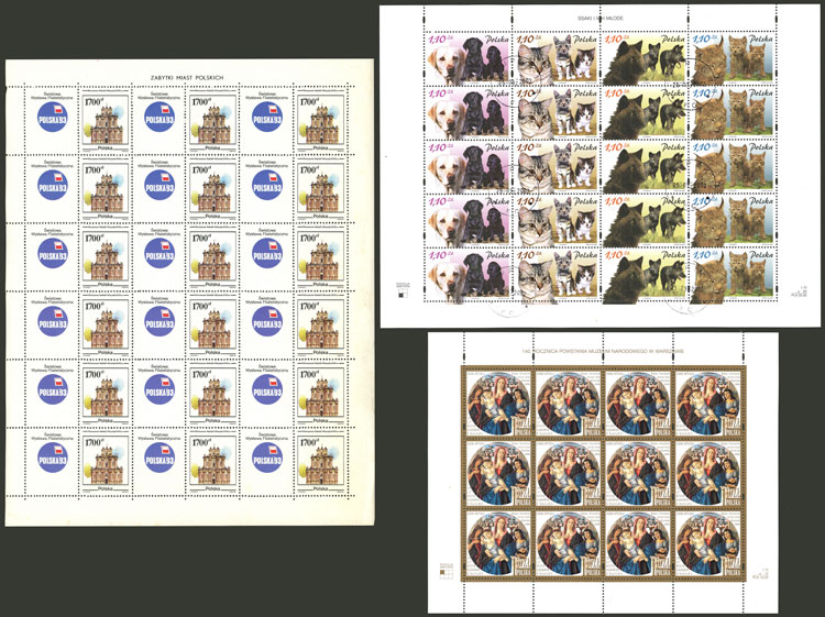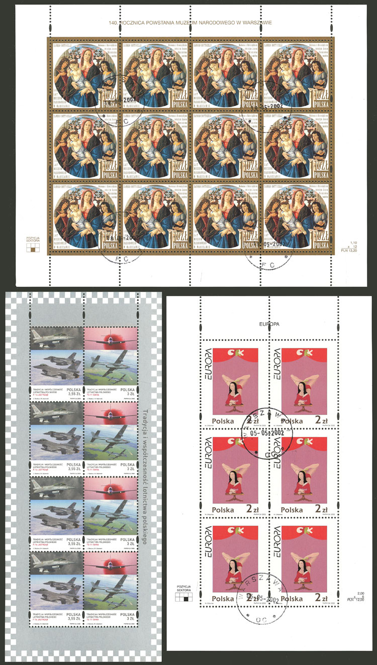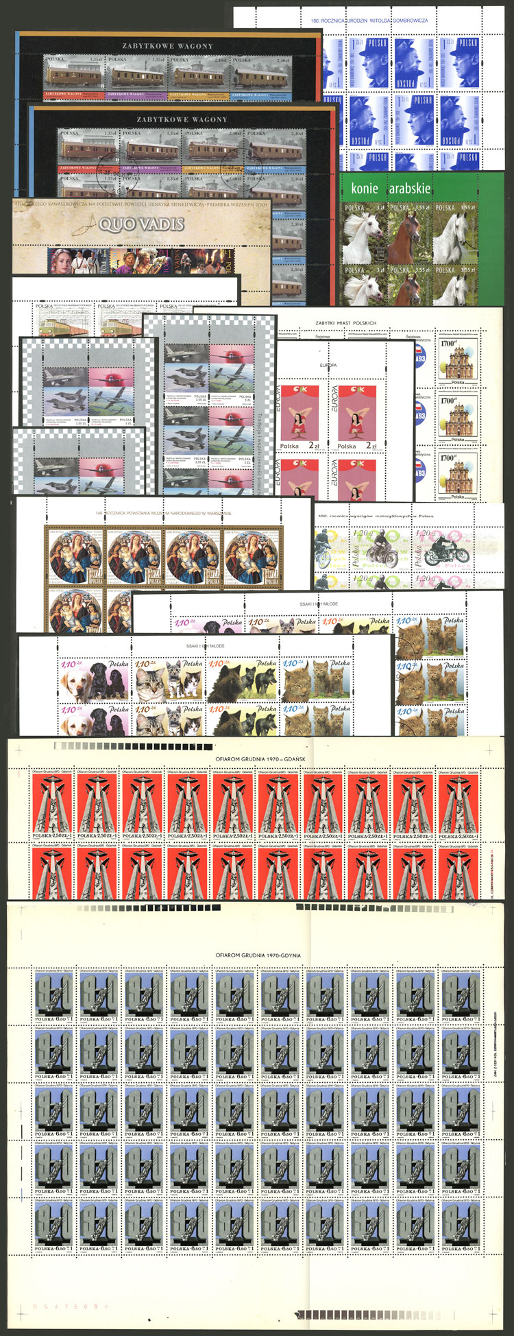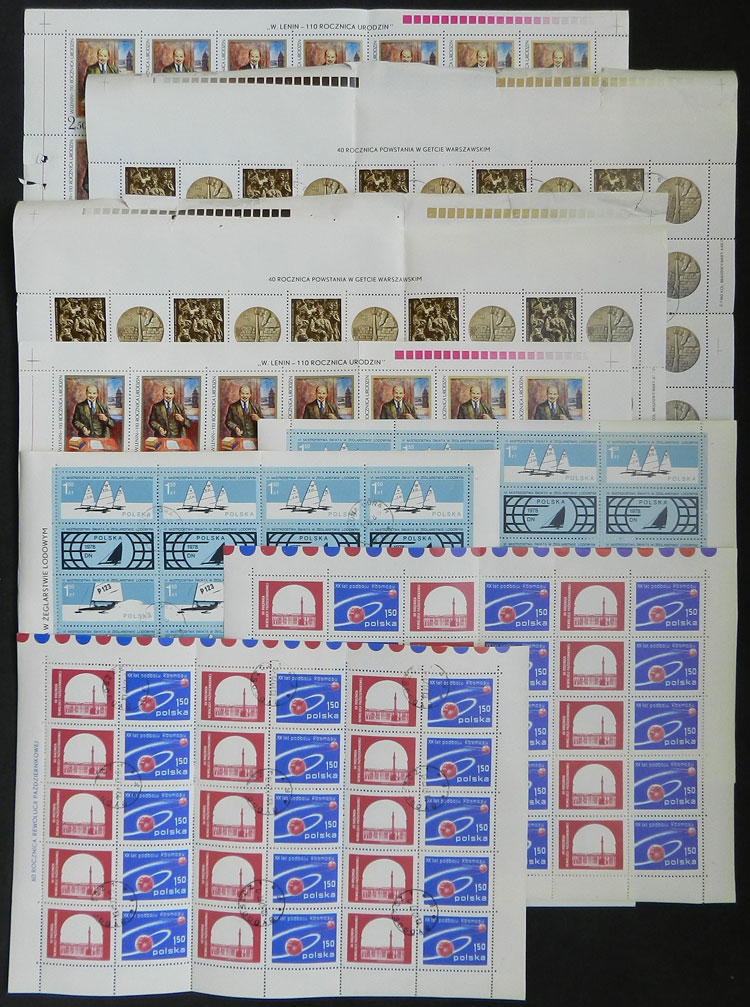 Lot of 8 complete sheets with modern stamps, mint or cancelled to order, the stamps of very fine quality, some of the sheet margins with creases and small defects, low start! IMPORTANT: Please view ALL the photos of the lot, because all