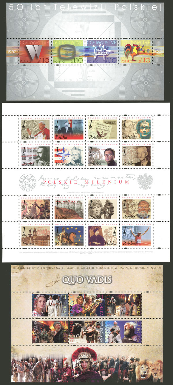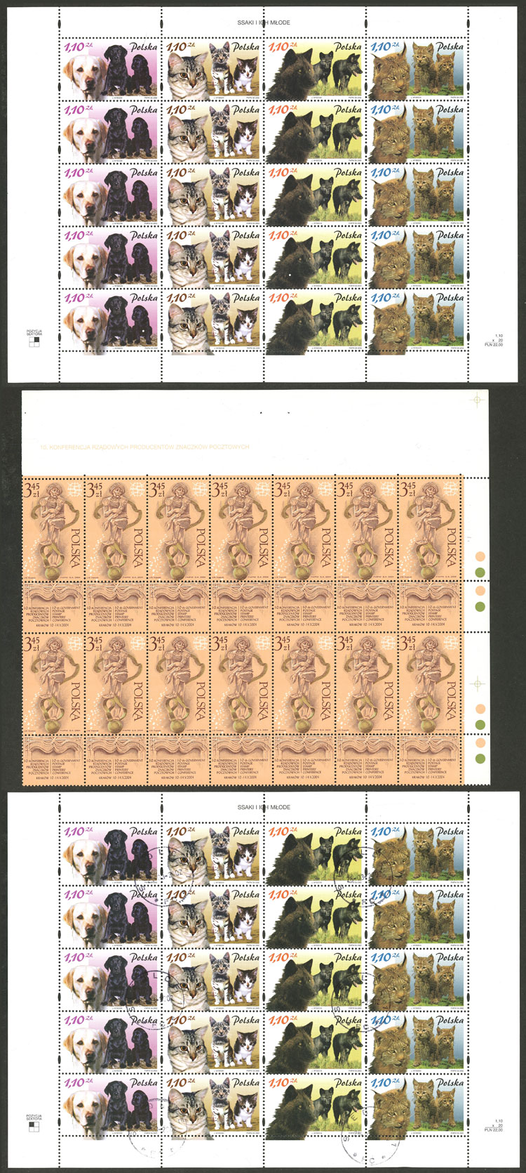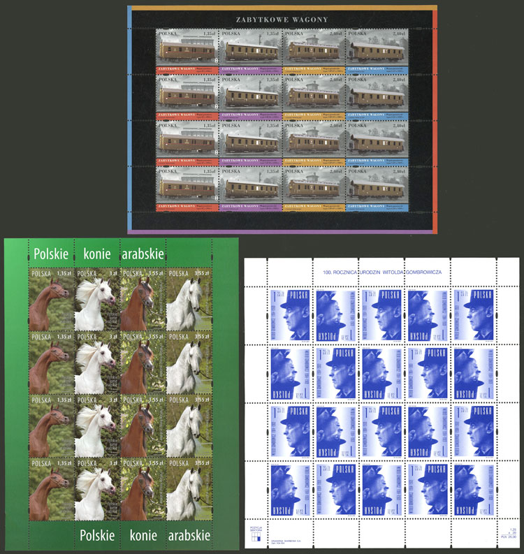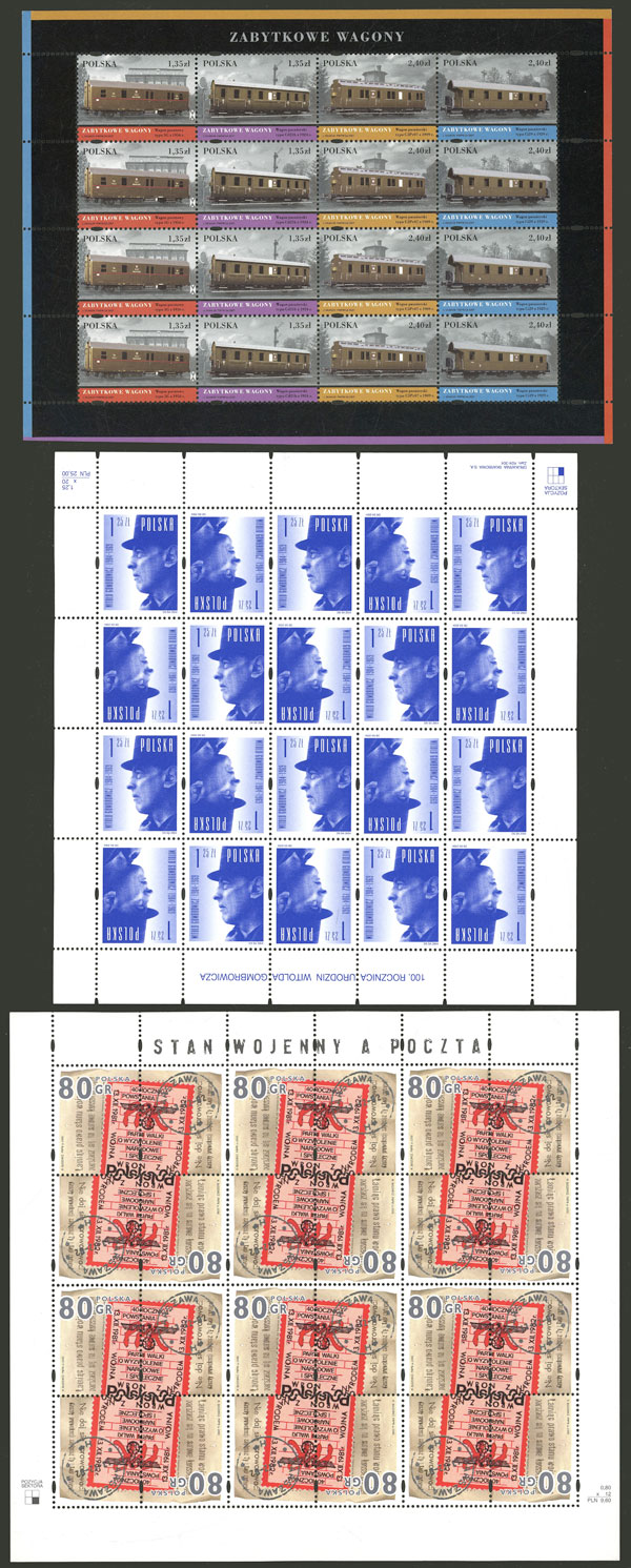 Lot of 8 complete sheets with modern stamps, mint or cancelled to order, the stamps of very fine quality, some of the sheet margins with creases and small defects, low start! IMPORTANT: Please view ALL the photos of the lot, because all