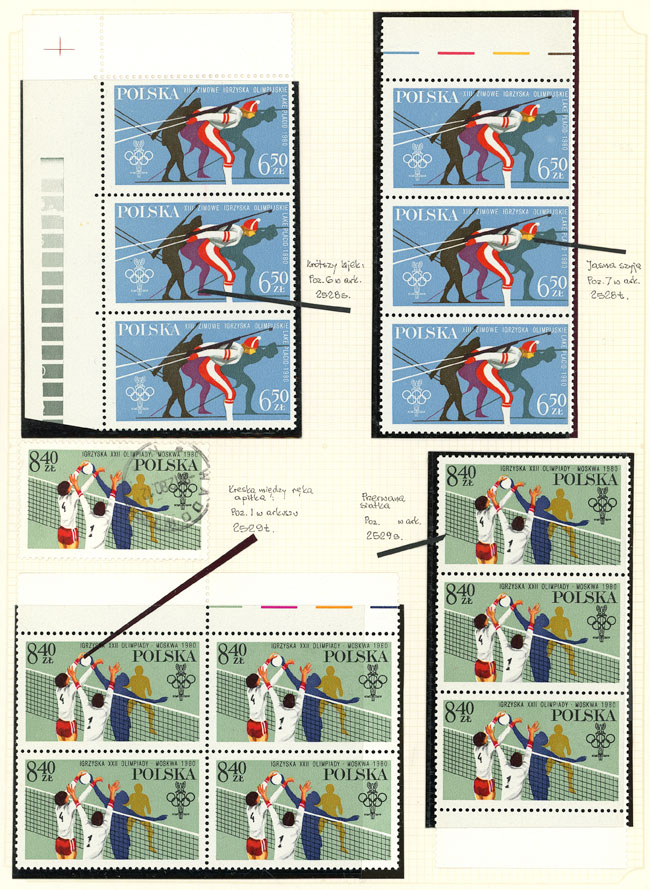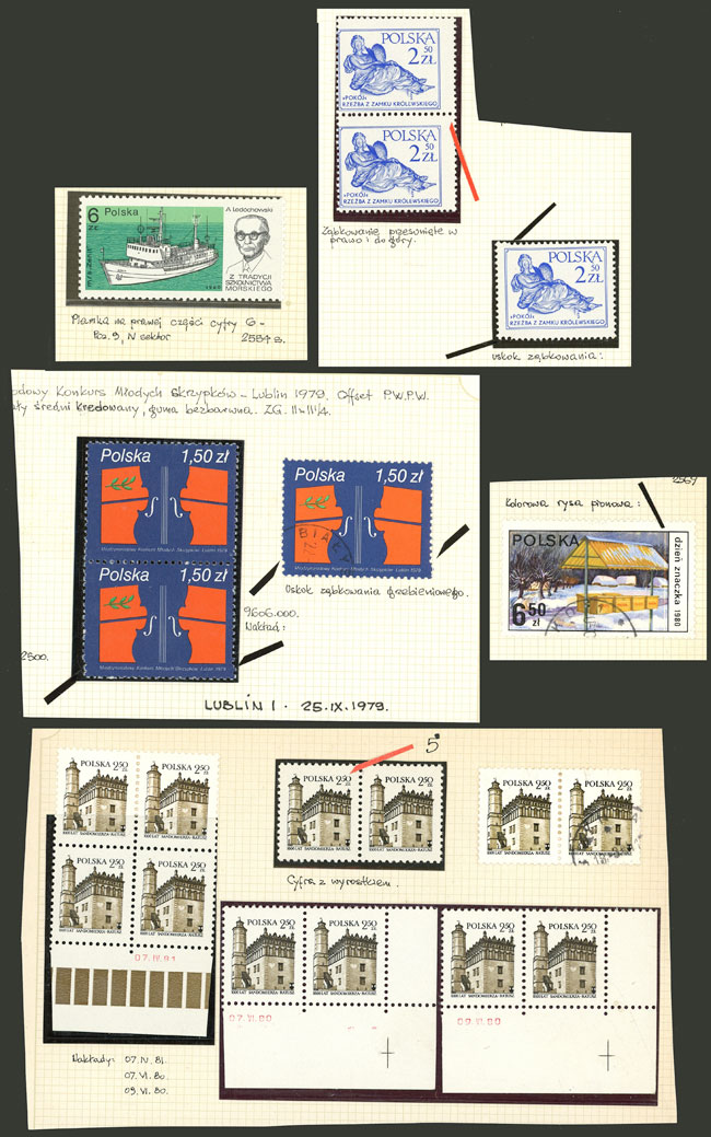 VARIETIES: Lot of modern stamps (circa 1978/81) with varieties, all mounted on album pages or fragments of pages, used or MNH and of excellent quality! IMPORTANT: Please view ALL the photos of the lot, because all the content has been