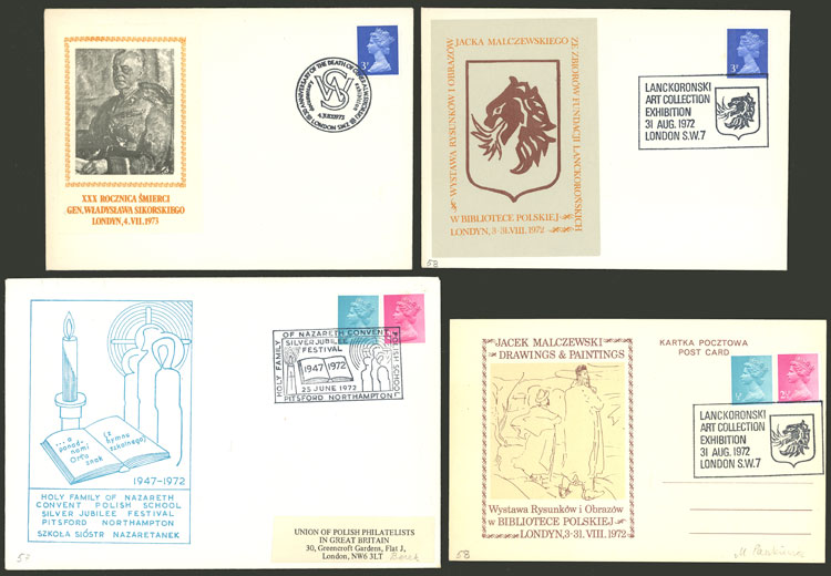 with about 50 covers, cards etc. related to Poland, with special postmarks, commemorative marks, etc., most of Great Britain. There is interesting material and some pieces are very scarce, low start! IMPORTANT: Please view ALL the photos of the lot,