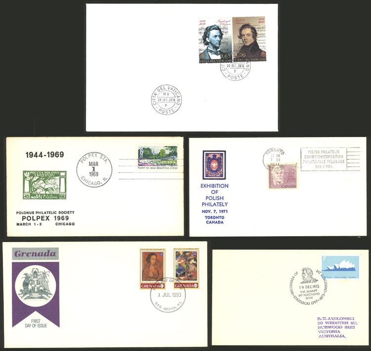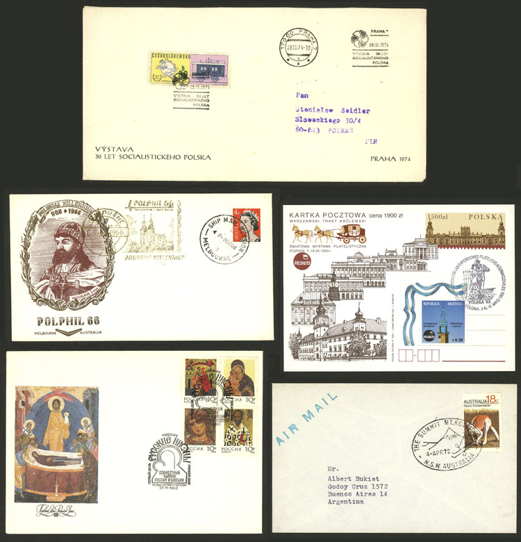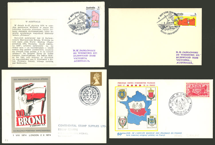POLAND IN THE WORLD: Over 30 covers, cards etc. with postmarks related to Poland, some signed, very fine quality, low start! IMPORTANT: Please view ALL the photos of the lot, because all the content has been scanned. (Image) (Image-02)
