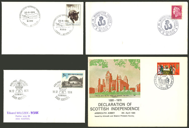 SPECIAL POSTMARKS, ETC.: Over 70 covers, cards, etc. with special postmarks (some are first day pmk), VERY THEMATIC, in general of very fine quality! IMPORTANT: Please view ALL the photos of the lot, because all the content has been