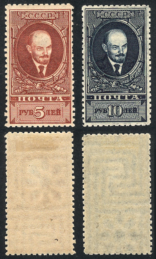 + 303b, 1926 Lenin, cmpl. set of 2 values with "Greek border and rosettes" watermark and perf 10½, very lightly hinged, excellent quality! (Image)
