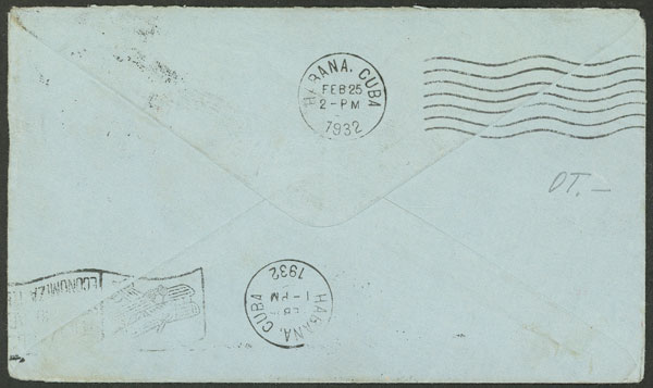 23/JA/1932 Bulawayo - London - Cuba, cover carried to London on first flight, and from there to Havana by surface mail, arrival backstamp of 25/FE, very fine quality, rare final destination! (Image) (Image-02)