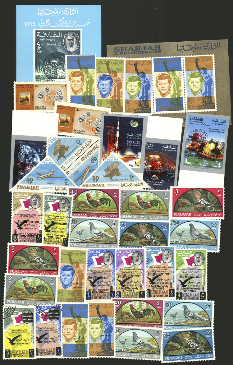 and Kennedy also overprints of KHOR FAKKAN, and 2 used stamps overprinted Trucial States), HIGH CATALOG VALUE, good opportunity at low start! (Image)