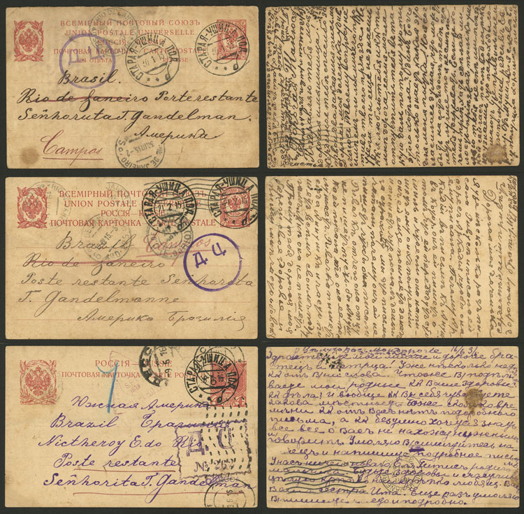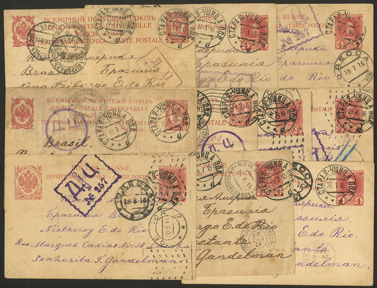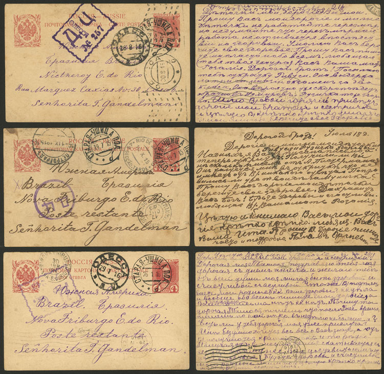 Postal cards sent to Brazil between 1915 and 1916, interesting postal and censor marks (some with Brazilian censor too), very interesting lot for the specialist!