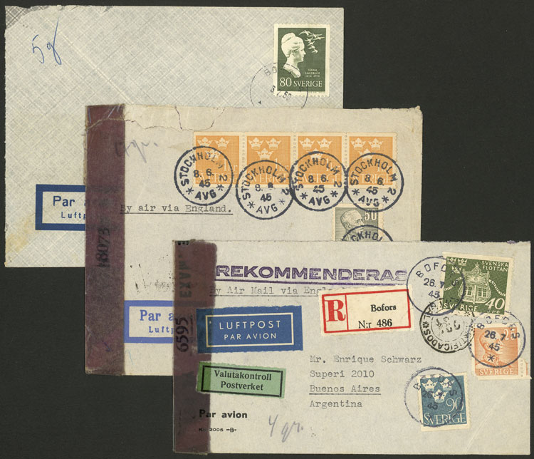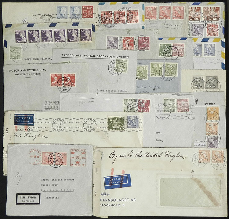 18 Covers sent to Argentina, almost all between 1945 and 1946, some CENSORED, there are interesting postages and postal markings and at least 2 stamps with commercial "THULE" PERFINS, very fine general quality! (Image) (Image-02)
