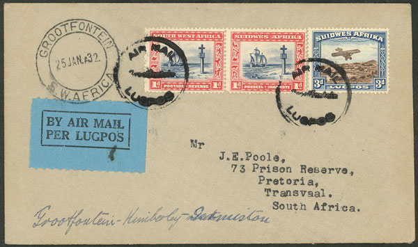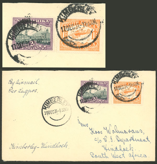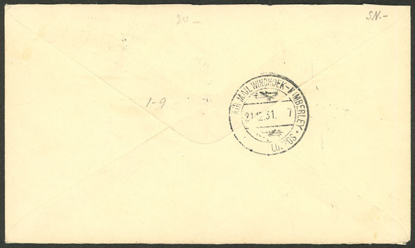 20/DE/1931 Kimberley - Windhoeck, flown cover with nice franking that includes Sc.C6, arrival backstamp, VF quality! (Image) (Image-02)