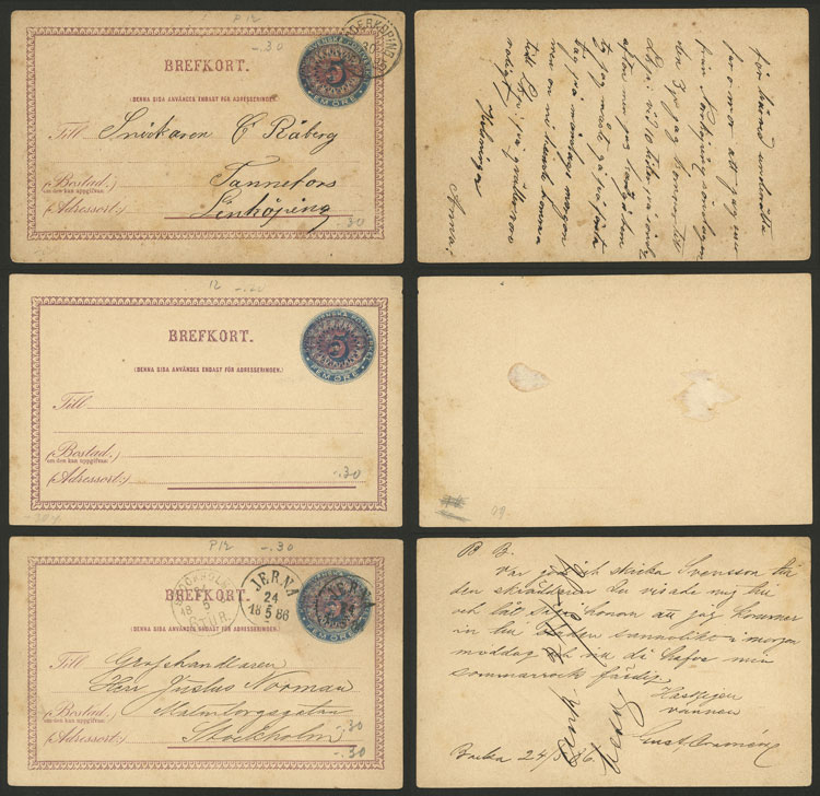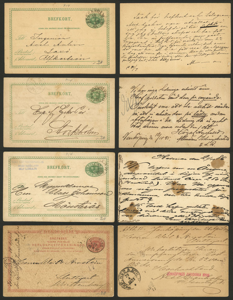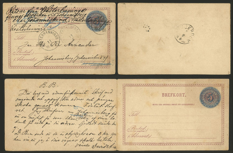 14 Old postal cards (postal stationeries), several used, one with the paid reply attached sent to Johannesberg in 1886 and returned to sender, very interesting lot. IMPORTANT: Please view ALL the photos of the lot, because all the content