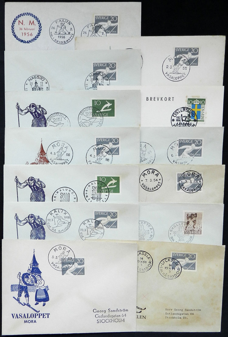 used between 1954 and 1959, all with postmarks related to topic SKI, very nice, low start! (Image)