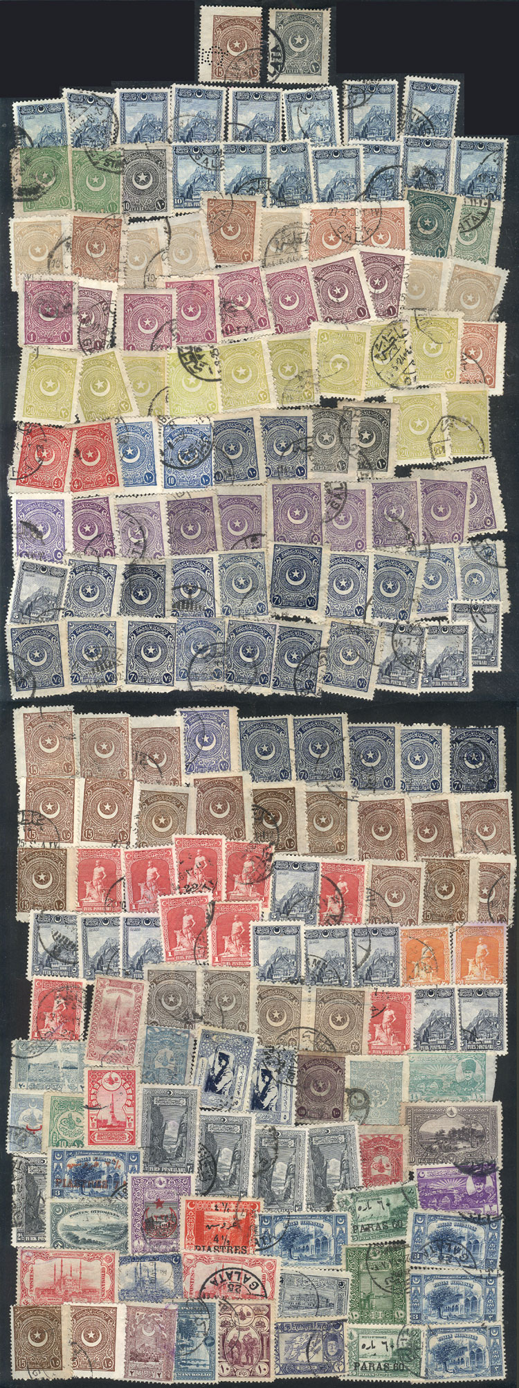 Envelope containing a good number of stamps, most used and of very fine quality, interesting lot to look for rare cancels and varieties. It includes a nice PERFIN and one example with PAPER FOLDS! (Image)