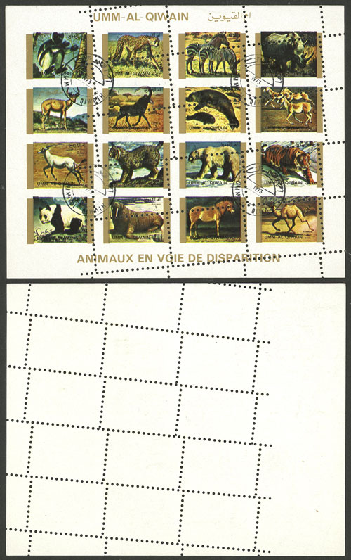 Endangered species, sheet issued in 1973, with notable MISPERFORATION variety, very nice! (Image)