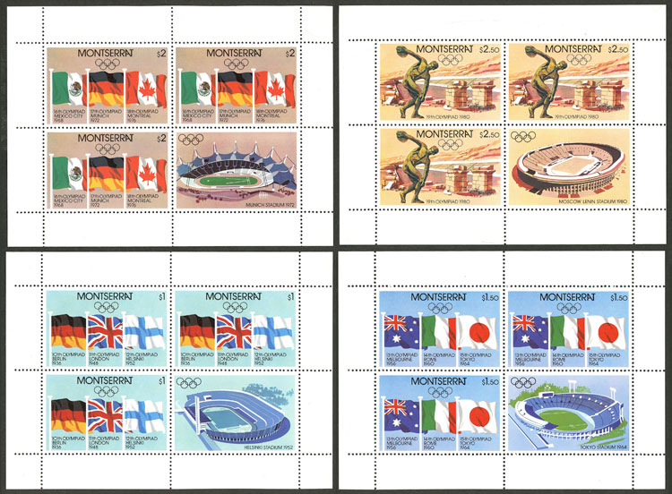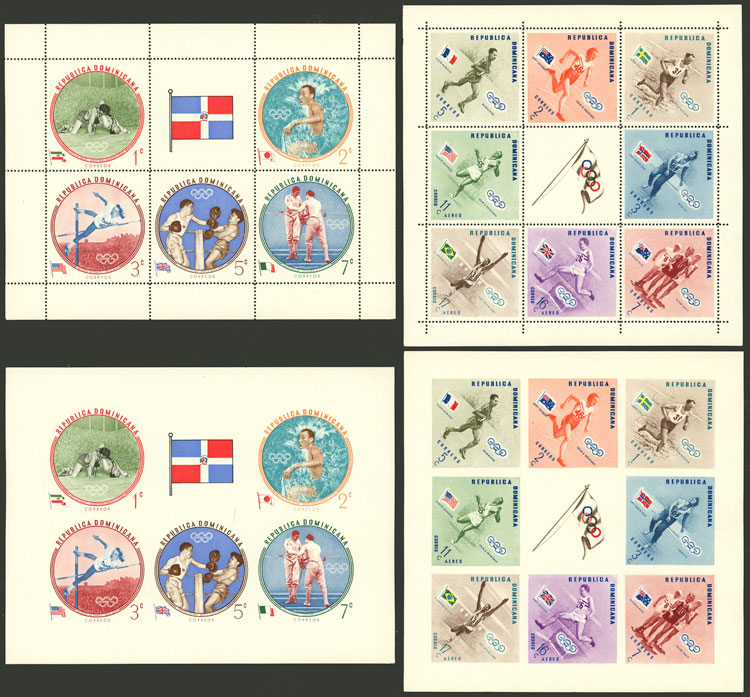 sheet issued in 1973, with notable MISPERFORATION VARIETY at top left due to foldover, also with DOUBLE vertical perforation in the bottom stamps, VF! (Image)