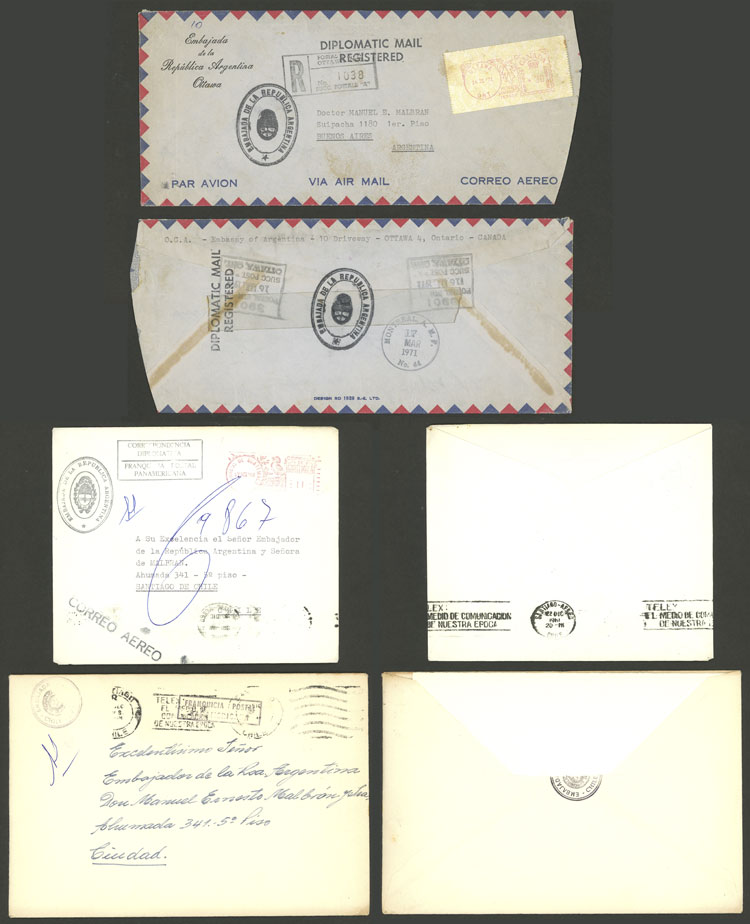 DIPLOMATIC MAIL: 19 Covers of several South American countries, with partial or complete free frank for diplomatic mail, very interesting lot for the specialist! IMPORTANT: Please view all the photos of the lot, because all the pieces