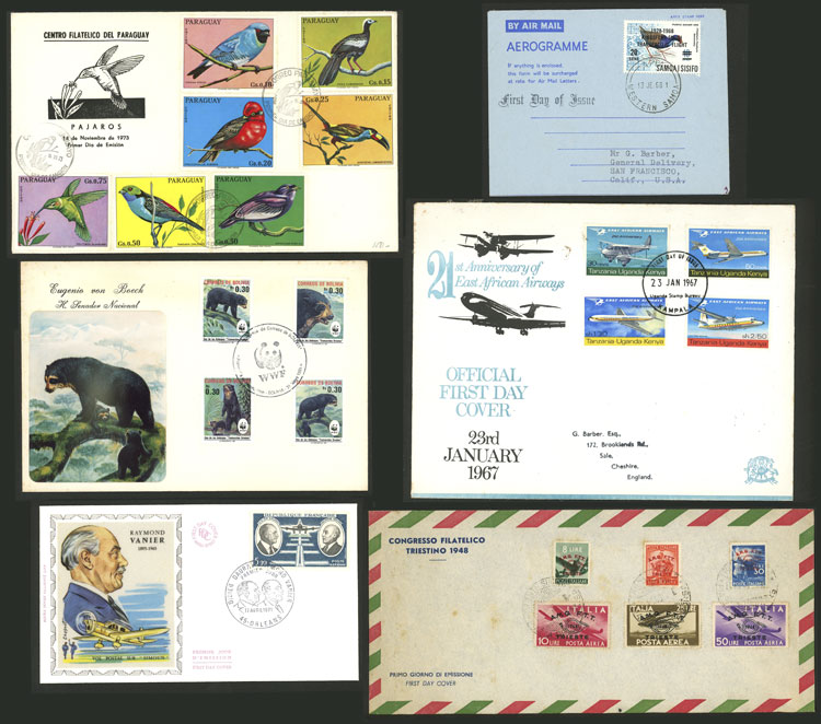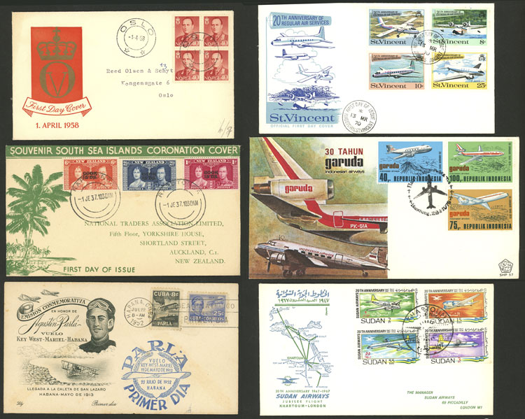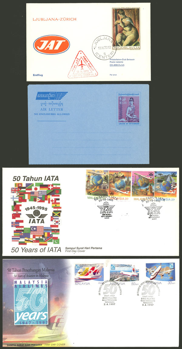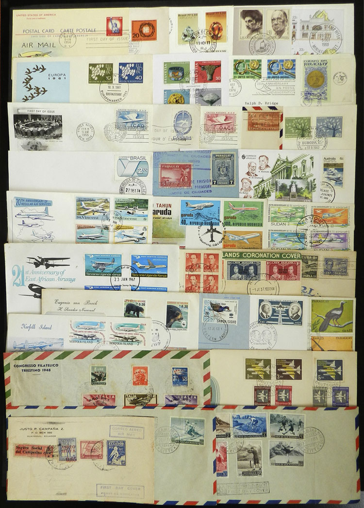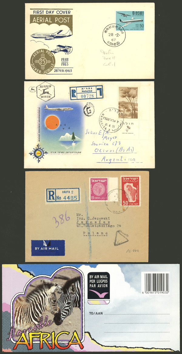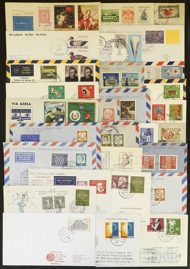 AIRMAIL, AVIATION: Lot of 34 items (covers, postal stationeries, first flights, etc.) of varied countries and periods, very fine quality, low start! IMPORTANT: Please view ALL the photos of the lot, because all the content has been