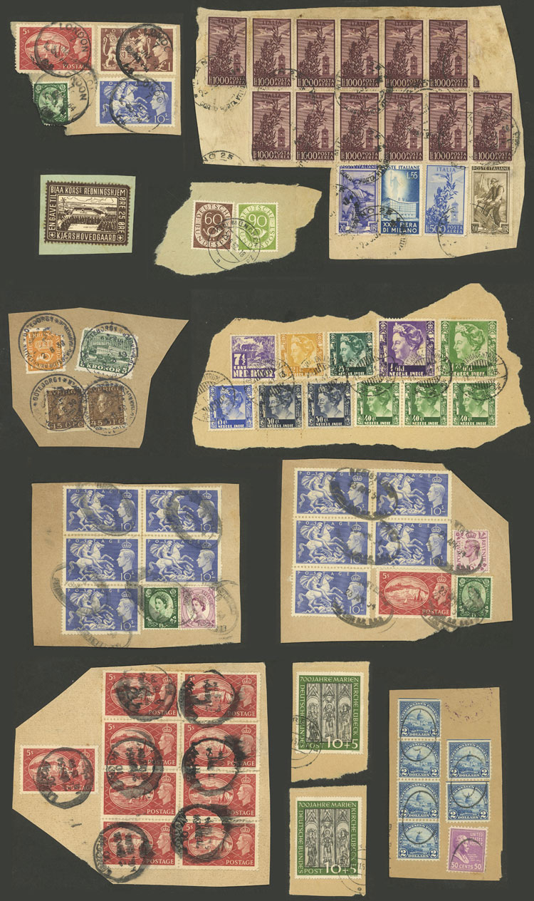 of stamps of high value on fragments of covers or parcel post, very interesting, good opportunity! (Image)