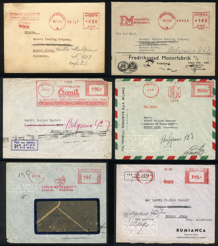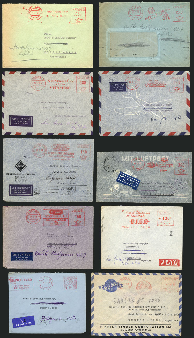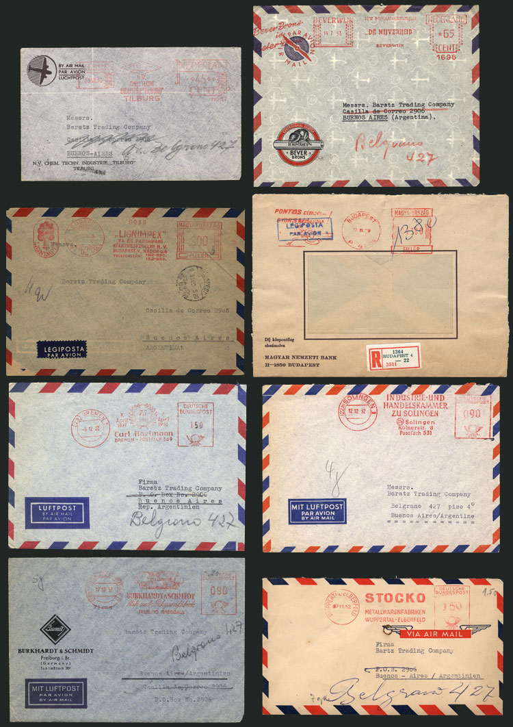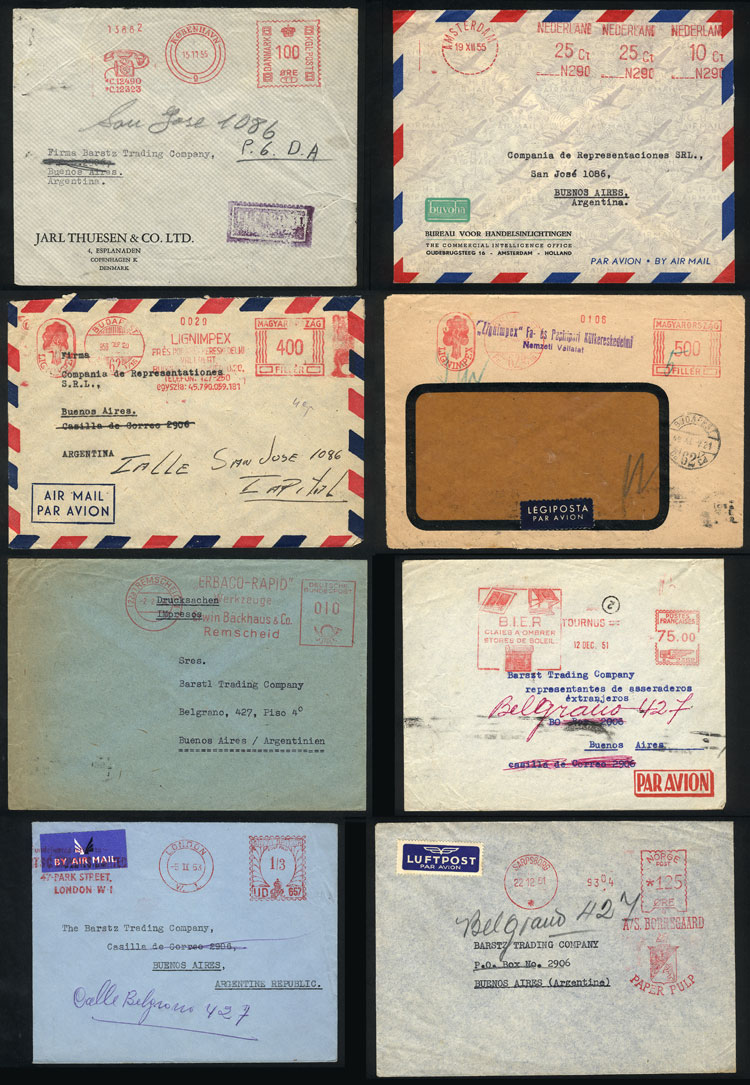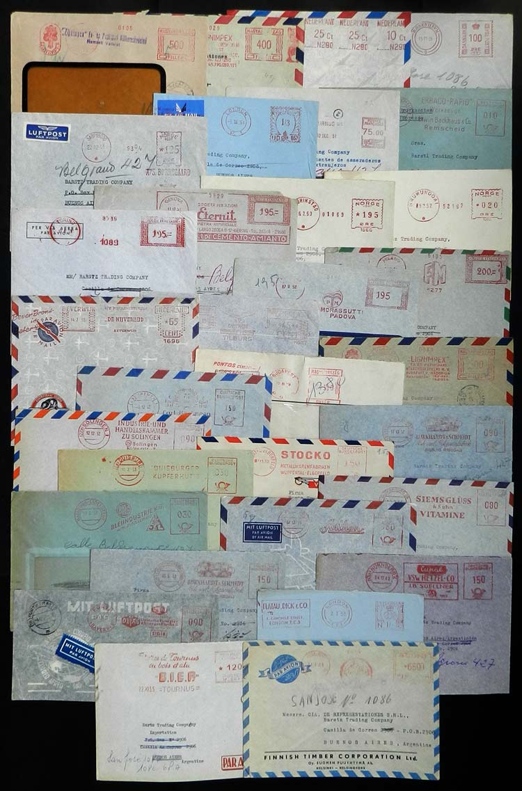 Covers posted in 1950s to Argentina from Denmark, Netherlands, Italy, Hungary, France, Norway, UK, Germany etc., ALL WITH METER STAMPS with interesting advertising slogans, VF general quality, very interesting lot for the especialist! (Image) (Image-02)