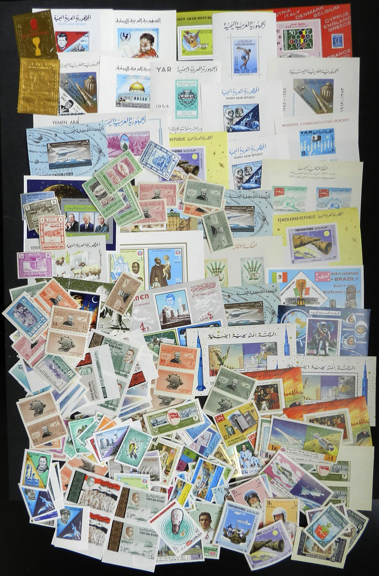 number of modern stamps, complete sets and souvenir sheets, VERY THEMATIC, MNH and of very fine quality. It includes at least a pair of IMPERFORATE s.sheets (proofs?), high catalog value, good opportunity! (Image)