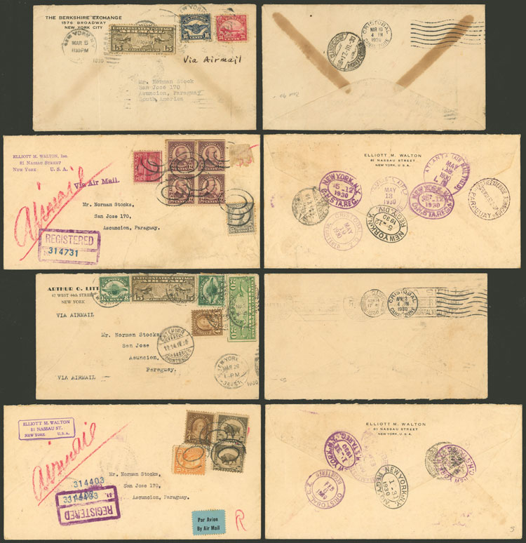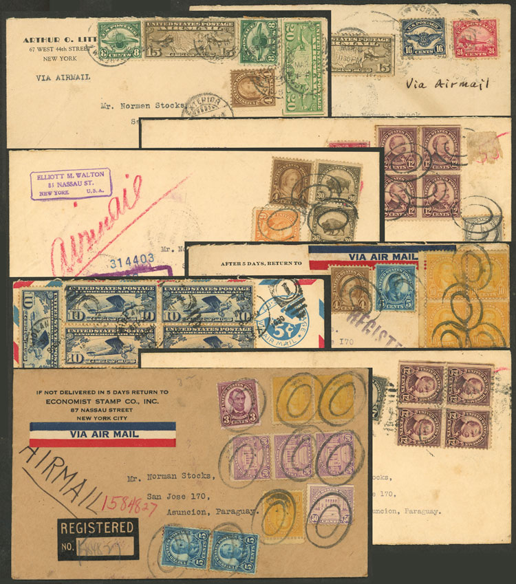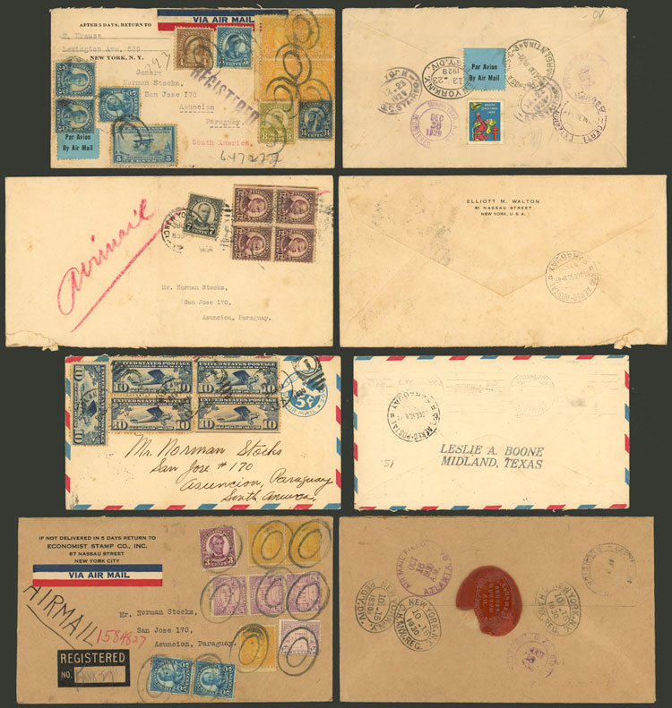Airmail covers sent to Paraguay in 1930, some registered, there are very interesting postages, in general of fine to very fine quality! ATTENTION: Please view ALL the photos of the lot, because all the content has been scanned (both sides) (Image) (Image-02)