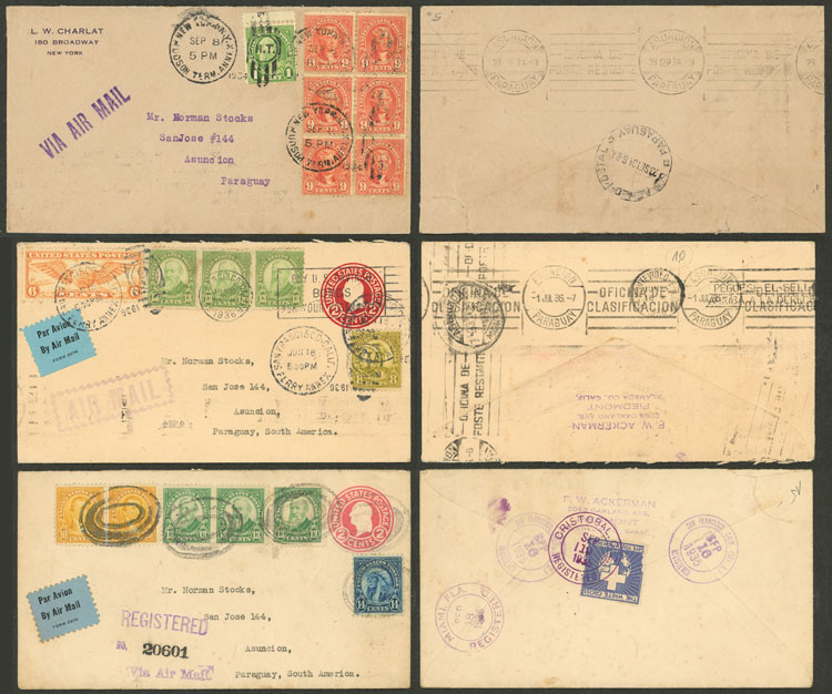 Airmail covers sent to Paraguay between 1931 and 1936, all with very attractive postages, in general of very fine quality! ATTENTION: Please view ALL the photos of the lot, because all the content has been scanned (both sides) (Image) (Image-02)