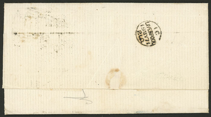 DOUBLE CROSSING OF THE ATLANTIC: 2/MAY/1871 New York to Buenos Aires via Liverpool, entire letter sent "via England", in Liverpool it was franked with 1/ and cancelled on 18/MAY, excellent quality, very interesting! (Image) (Image-02)