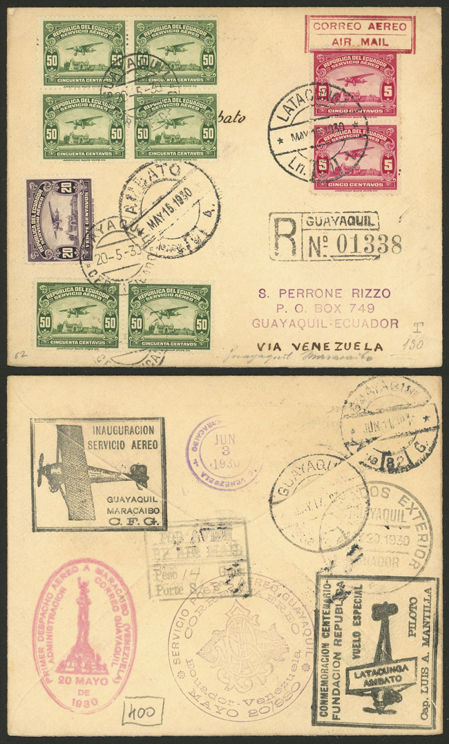 flown on 15/MAY/1930 in the Latacunga-Ambato flight by military airplane, it arrived in Ambato on 15/MAY and from there it was carried by train to Guayaquil (arrival on 17/MAY), and then it was carried on the GUAYAQUIL - MARACAIBO flight (arrival on