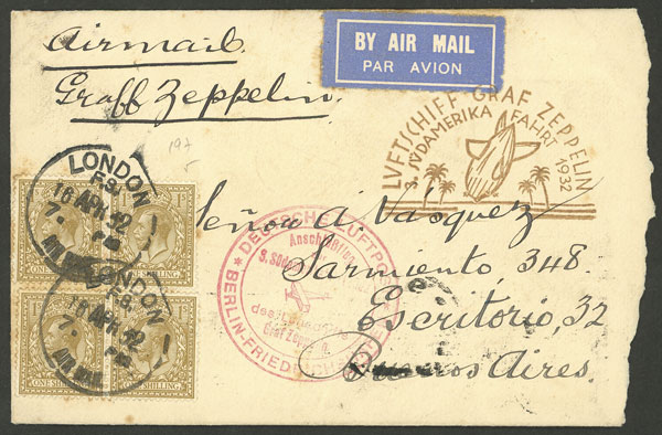 16/AP/1932 London - Argentina via Germany, commercial cover flown by ZEPPELIN, with special marks and on back B.Aires arrival, VF! (Image) (Image-02)