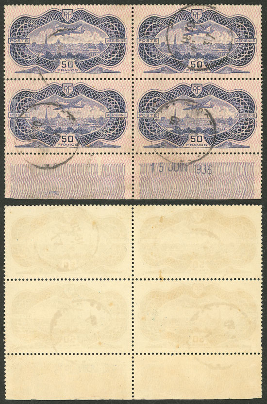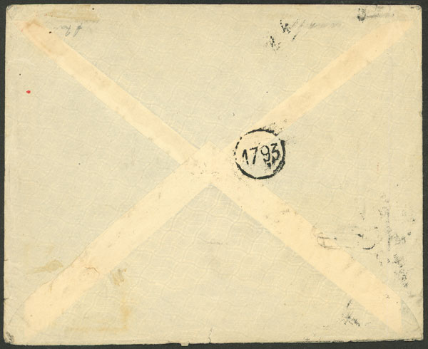 signs of fire damage, with violet mark and several official seals of the French Post, excellent and very rare origin! (Image)