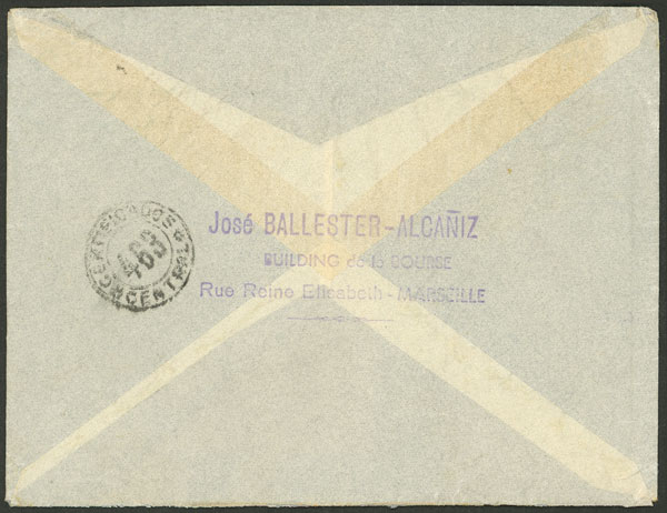 11/FE/1939 Marseille to Argentina, registered airmail cover franked with 76.80Fr., on back arrival mark of Buenos Aires (numeral), excellent!