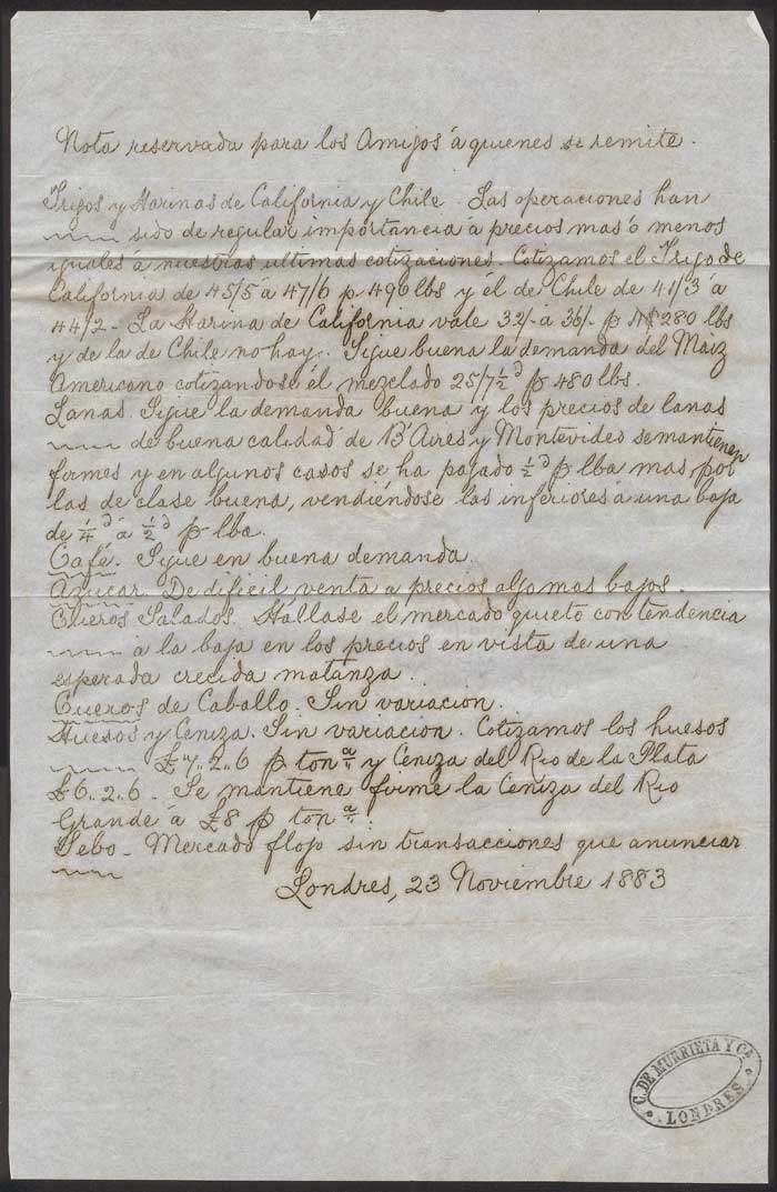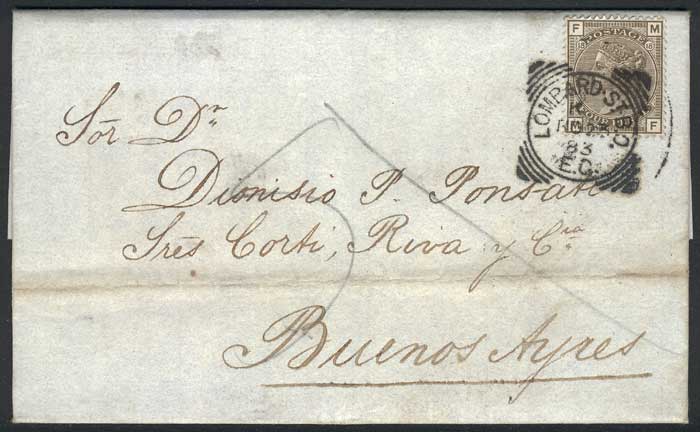 23/NO/1883 LONDON - ARGENTINA: folded letter franked by Sc.84 plate 18, cancelled LOMBARD ST. B.O. - E.C., with Buenos Aires arrival backstamp. It includes a printed leaflet with information on various products, very interesting,
