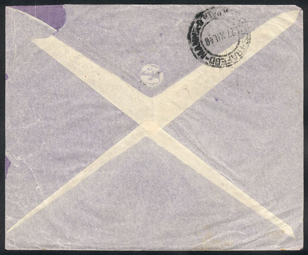 Airmail cover sent to Santos (Brazil) on 21/DE/1948 franked with 150L. (Sassone 17 + 28), very fine quality! (Image) (Image-02)
