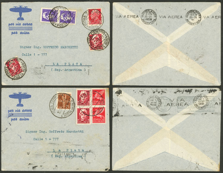 Airmail covers sent from Roma to Argentina, via LATI, franked with 24.75L., all with arrival backstamps, VF quality! (Image) (Image-02)