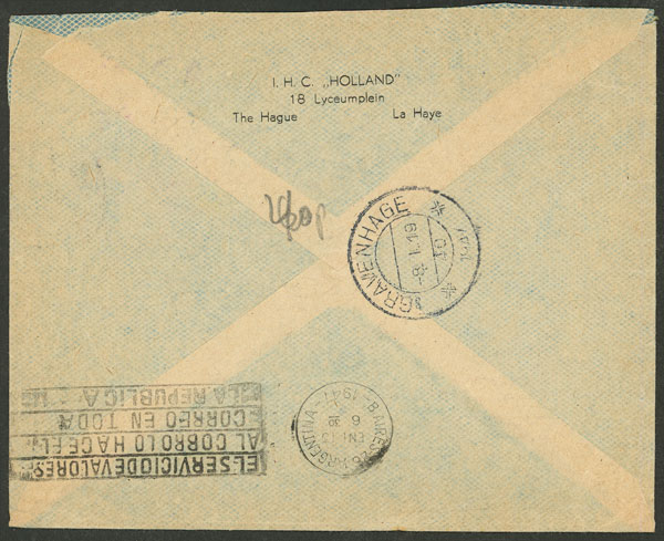 8/JA/1947 La Haya to Argentina, airmail cover franked with 3.62½G., on back arrival mark of Buenos Aires 13/JA, very fine quality! (Image) (Image-02)