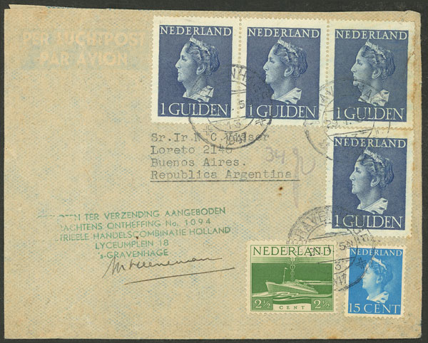 29/JA/1947 La Haya to Argentina, airmail cover franked with 4.17½G., very attractive! (Image) (Image-02)