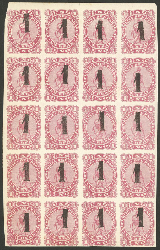 1884 1c. on 5c. rose, large block of 20, MNH, excellent quality, rare! (Image)