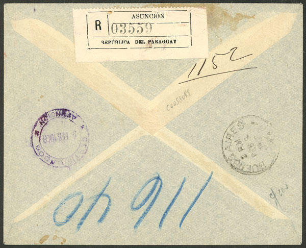 registration cancel of Asunción 31/AU/1940 and Buenos Aires arrival backstamp, VF quality! (Image) (Image-02)