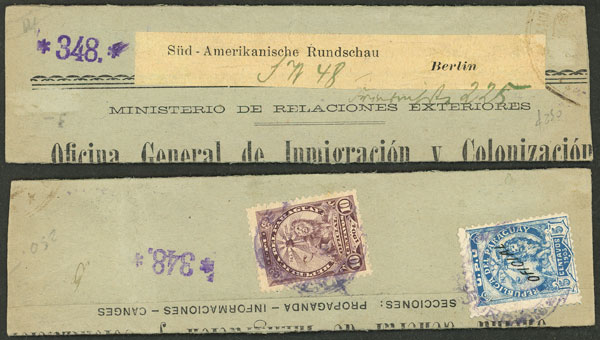 MAIL: Wrapper that contained printed matter of the General Office of Immigration and Colonization, sent to Germany (circa 1904) franked with 15c. with official stamps, very fine quality and very rare, ex-Loeb (its price was US$250) (Image)