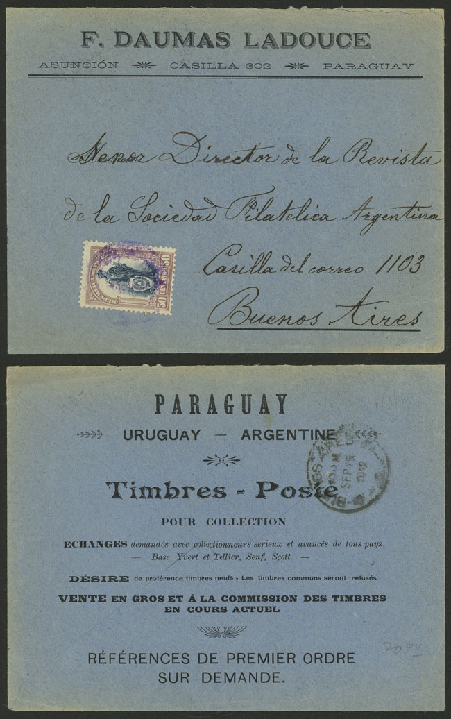 with advertising on back of a stamp dealer, sent from Asunción to Buenos Aires franked with 50c., on back arrival mark of 15/SE/1912, excellent! (Image)