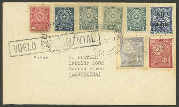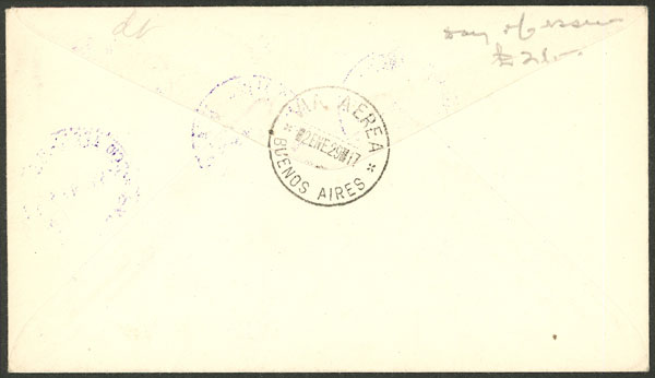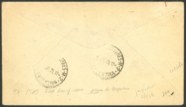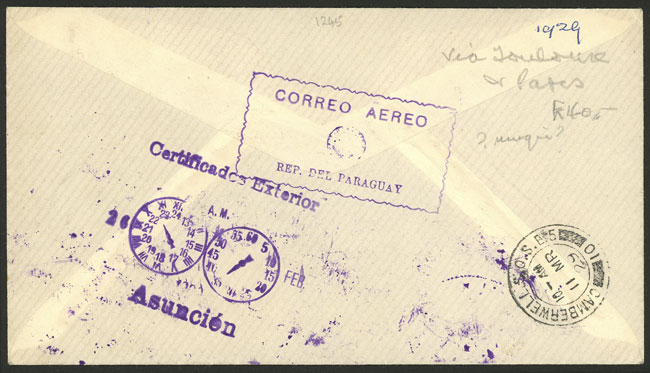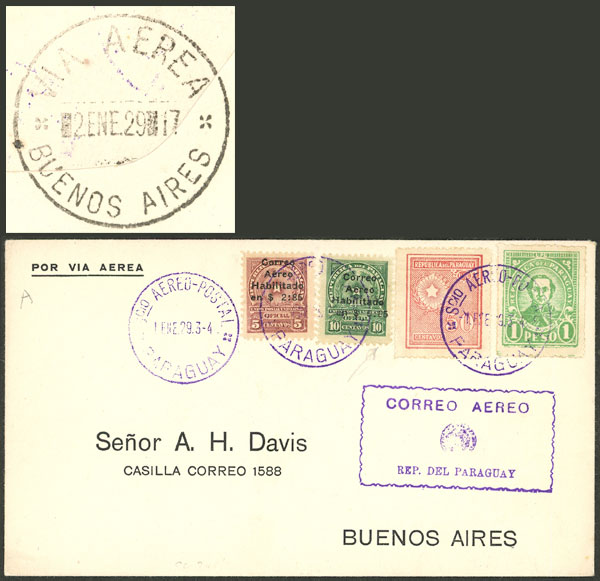1/JA/1929 Asunción to Buenos Aires, test flight of Cie. Gral. Aeropostale (pilot Paul Vachet), on back arrival mark of Buenos Aires 2/JA, excellent quality!