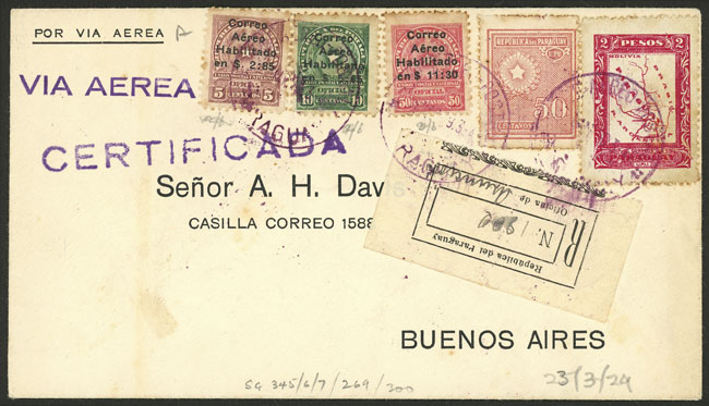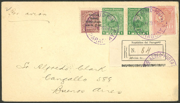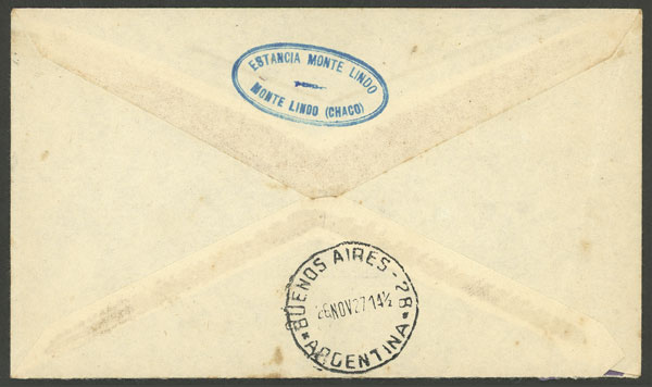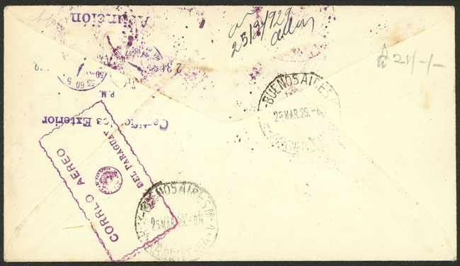 23/MAR/1929 Asunción - Buenos Aires, first regular flight (return) of Cia. Aeroposta Argentina S.A. (pilot Paul Vachet), on back there is an arrival mark of Buenos Aires 23/MAR, excellent quality! (Image) (Image-02)